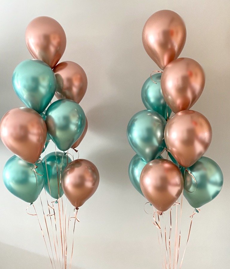 • 10 x balon lateksowy, kolor metaliczny zielony z helem;