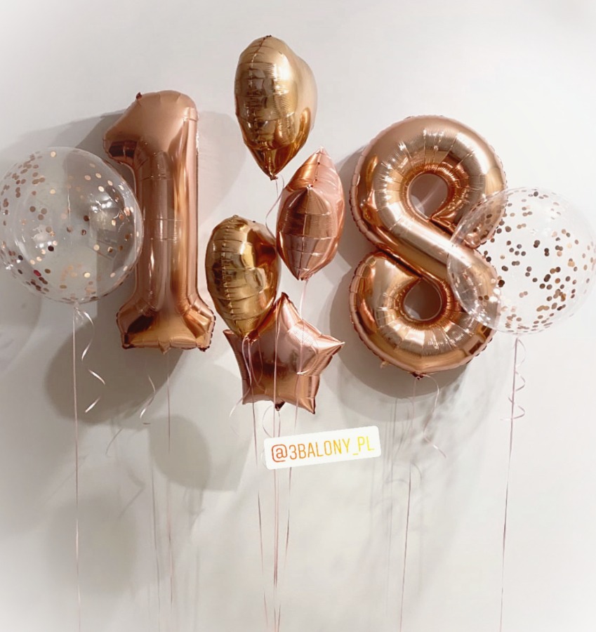 • 2 x balon foliowy cyfra, kolor rose gold, rozmiar 90 cm z helem.