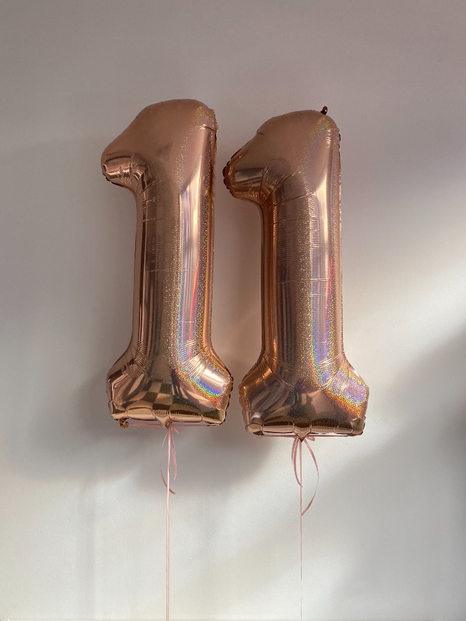 • 1 x balon cyfra holograficzna „1”, rozmiar 90 cm z helem + wstążka ~1,5 m.
