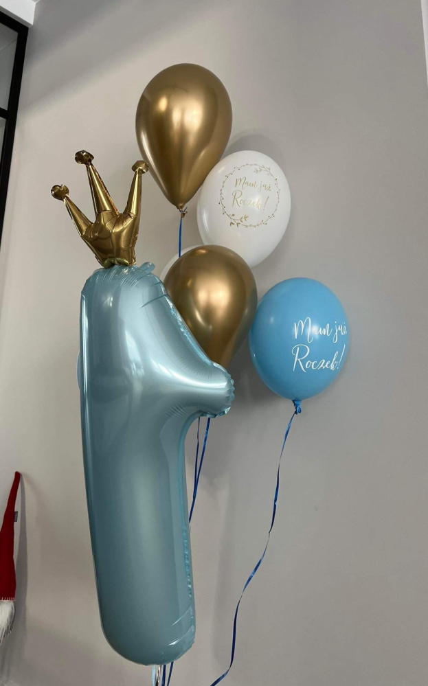 Balon cyfra 1 z koroną w niebieskim kolorze