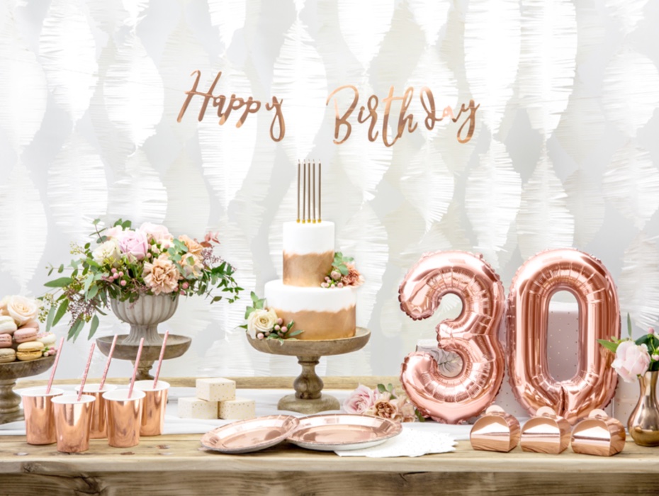 Balon foliowy Cyfra ”3″ i „0” w kolorze gold rose