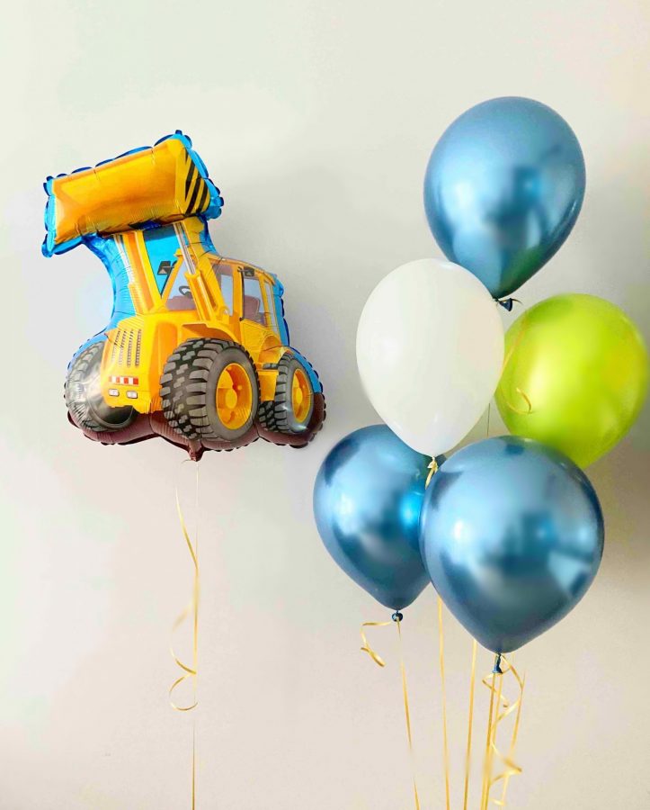 • 1 x balon foliowy koparka, dwustronny nadruk, rozmiar 81 x 66 cm z helem + wstążka ~1,5 m.