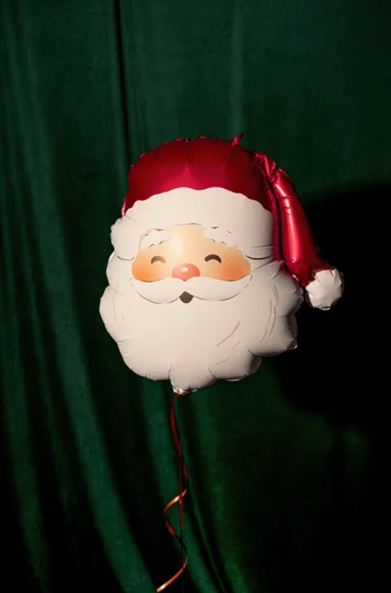 • 1 x balon foliowy Mikołaj, rozmiar przed napompowaniem 58 x 53 cm, po napompowaniu 42 x 43 cm z helem + wstążka ~1,5 m.