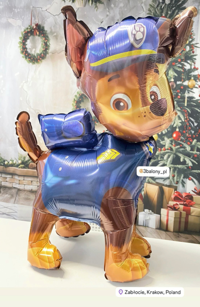 • 1 x balon foliowy Psi Patrol Chase stojący „chodzący”, rozmiar 45 x 60 cm wypełniony powietrzem.