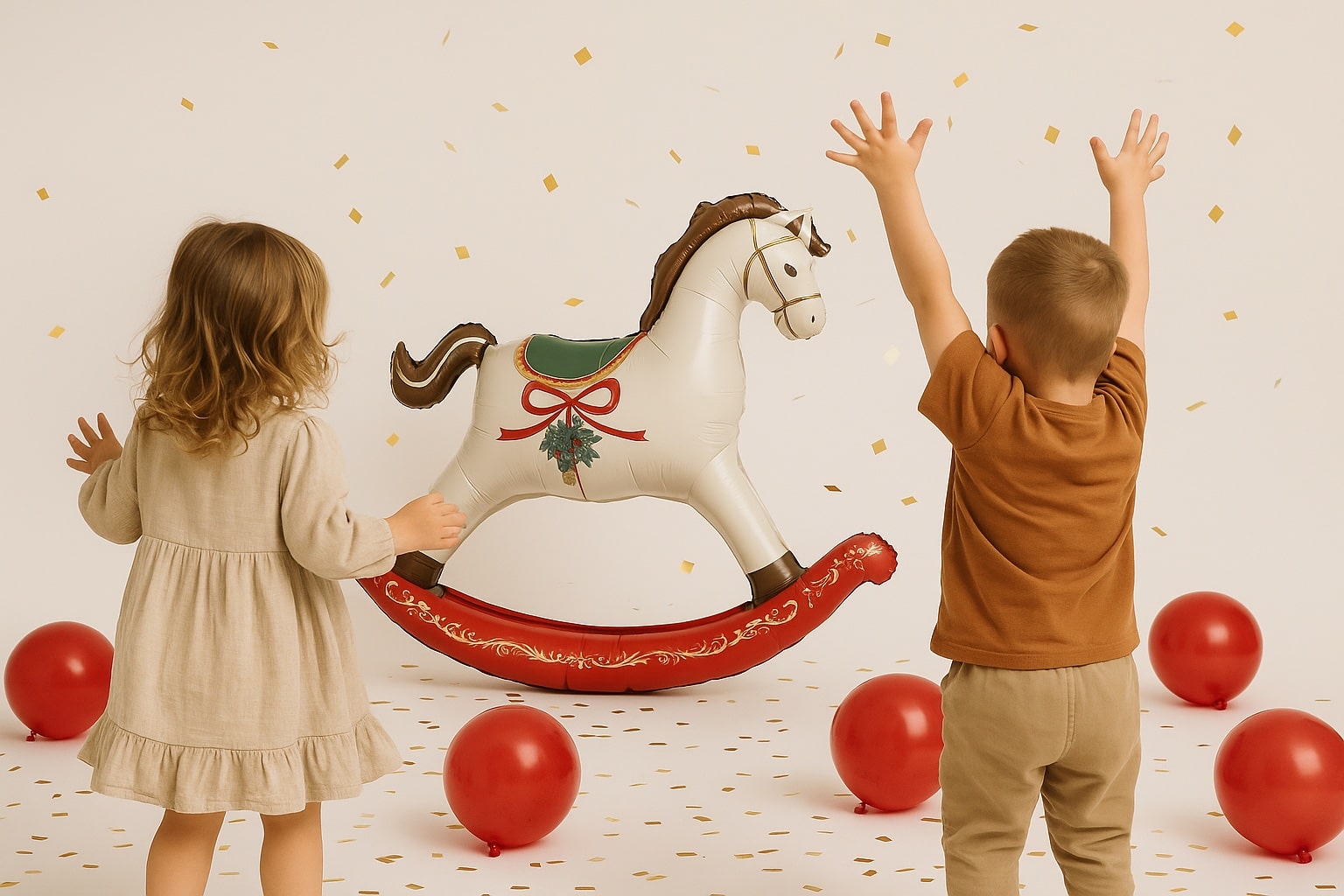 • 1 x stojący balon foliowy Koń świąteczny, mix kolorów, wymiary przed napompowaniem ok. 118 cm x 104 cm (46.5 x 41”), wymiary po napompowaniu ok. 106 x 86 cm (41.5 x 34”). Do napompowania powietrzem. Zestaw zawiera słomkę.
