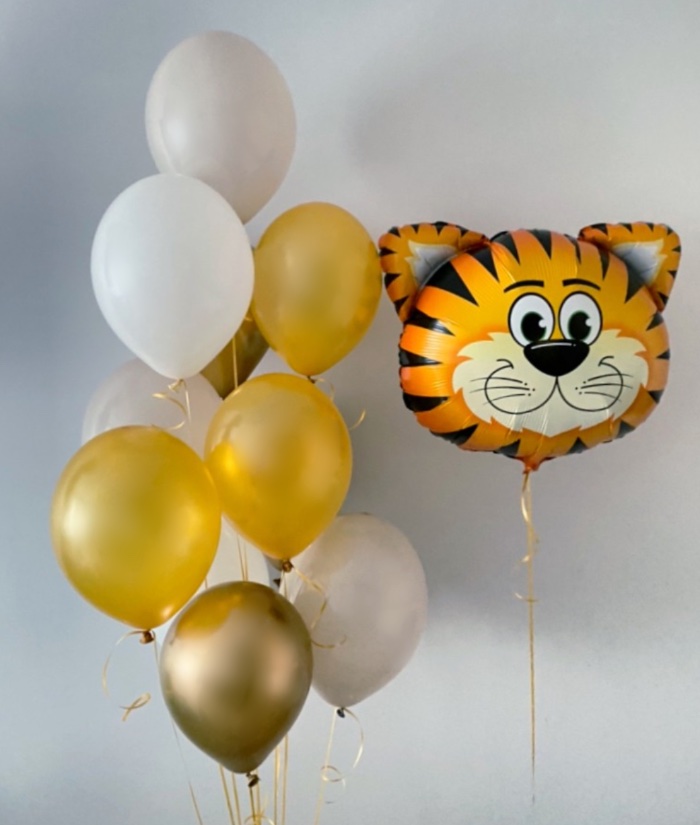 • 1 x balon foliowy tygrysek, rozmiar 76 cm + wstążka ~1,5 m.