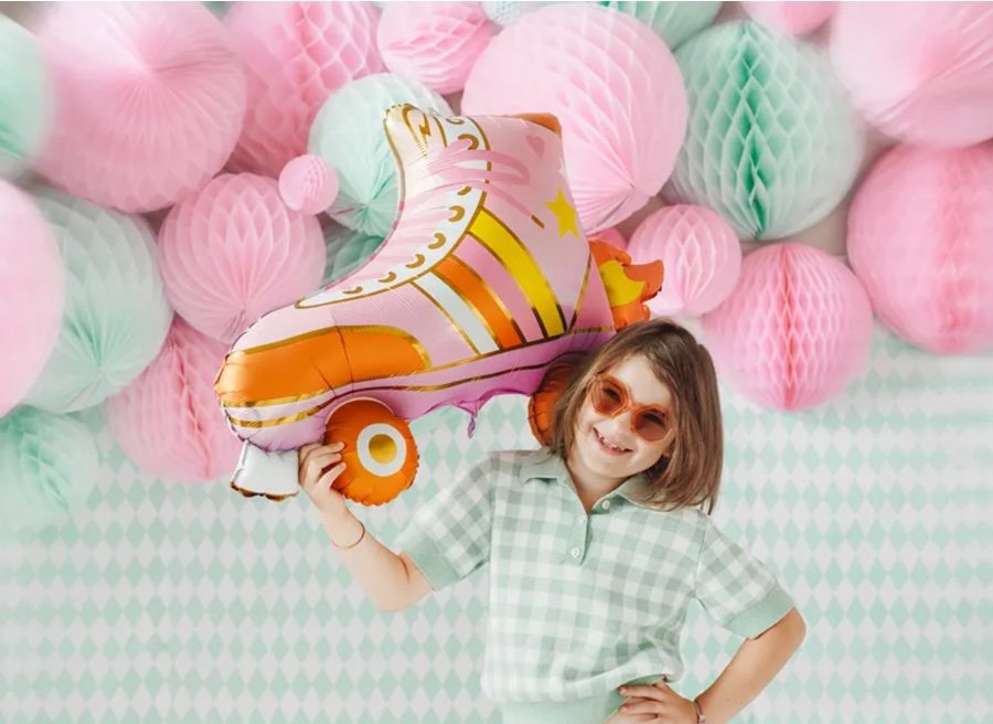 • 1 x balon foliowy wrotka, rozmiar 74 cm z helem + wstążka ~1,5 m.