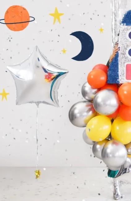 • 1 x balon foliowy gwiazdka, kolor srebrny, rozmiar 70 cm (27.5”) + wstążka ~1,5 m.