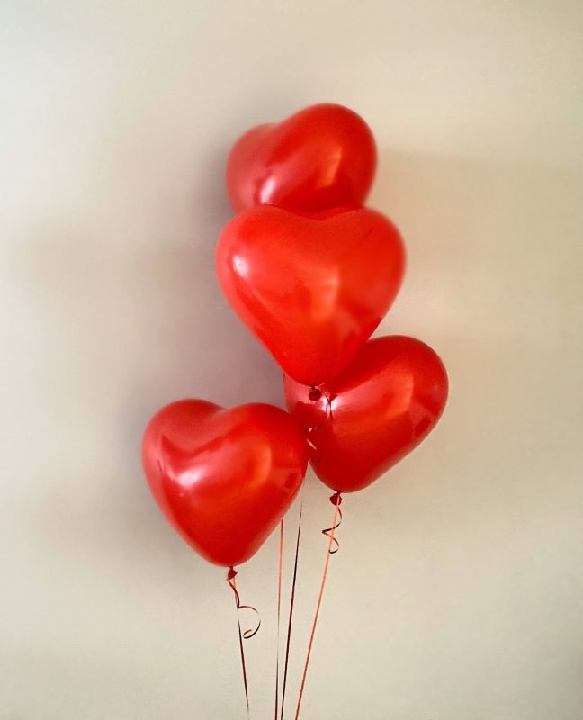 • 1 x balon lateksowy w kształcie serca, rozmiar ~35 cm z helem + wstążka ~1,5 m.