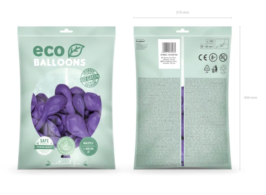 • 1 x balon lateksowy w lawendowym kolorze, rozmiar 30 cm z helem + wstążka ~1,5 m.
