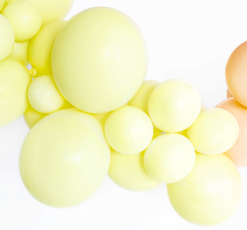 • 1 x balon lateksowy w kolorze pastel lemon, rozmiar 27 cm z helem + wstążka ~1,5 m.