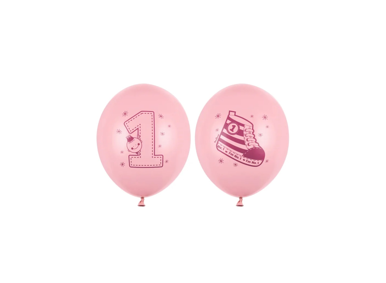 • 1 x balon lateksowy „1” w kolorze Pastel Baby Pink, z czerwonym, dwustronnym nadrukiem, rozmiar 30 cm + wstążka ~1,5 m.
