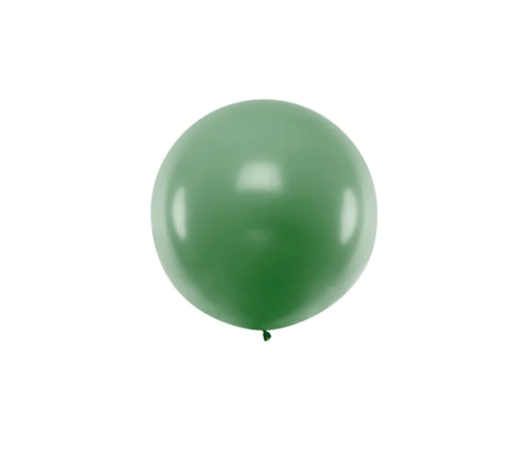 • 1 x balon lateksowy okrągły, rozmiar 1 m, kolor pastel dark green z helem + wstążka ~1,5 m.