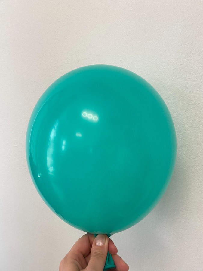 • 1 x balony lateksowy w kolorze pastel forest green, rozmiar 30 cm z helem + wstążka ~1,5 m.