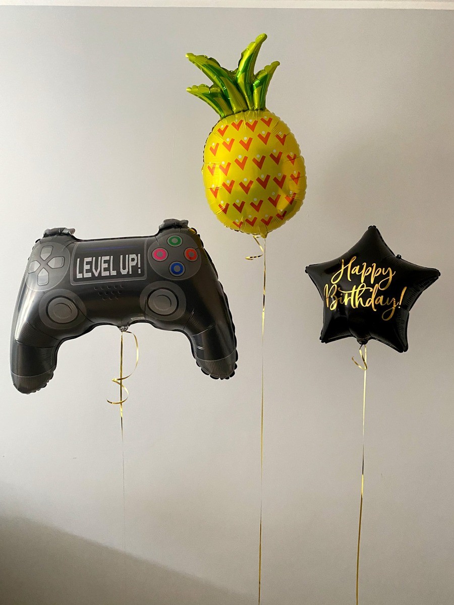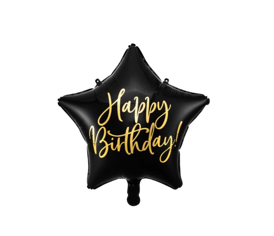 • 1 x balon gwiazdka z napisem „Happy birthday”, rozmiar 40 cm z helem + wstążka ~1,5 m.