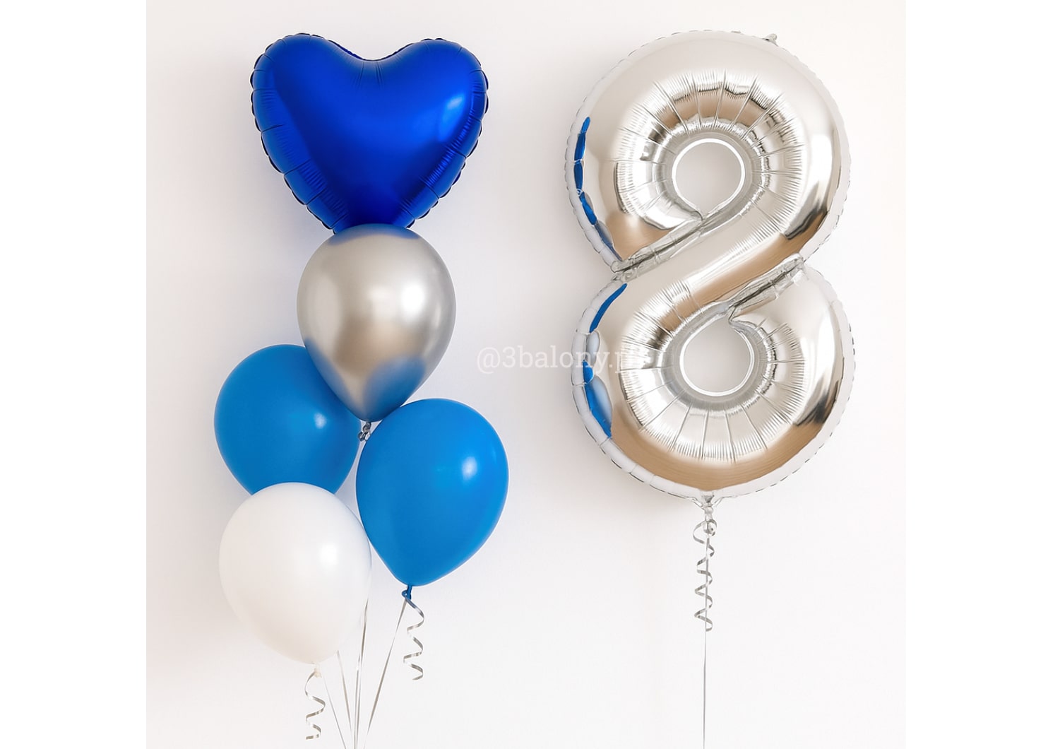 • 1 x balon foliowy w kształcie cyfry (ok. 100 cm), kolor srebrny z helem;