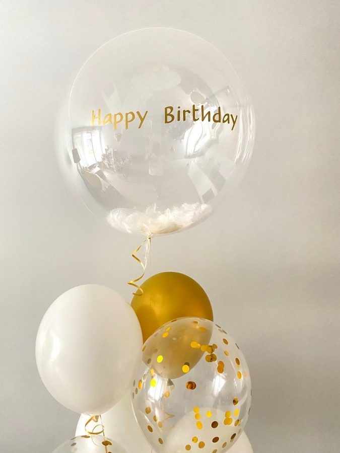 Możliwość dodania jednego / dwóch balonów foliowych w kształcie cyfry (ok. 100 cm). Cyfry napełnione helem i posiadają wstążkę ok. 2 m