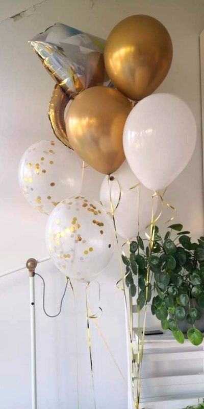 • 2 x balon przezroczysty wypełniony konfetti z helem;