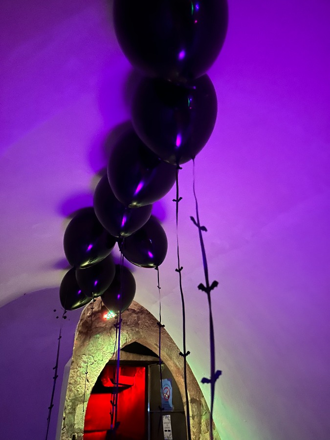Czarne balony z tasiemką z nietoperzami