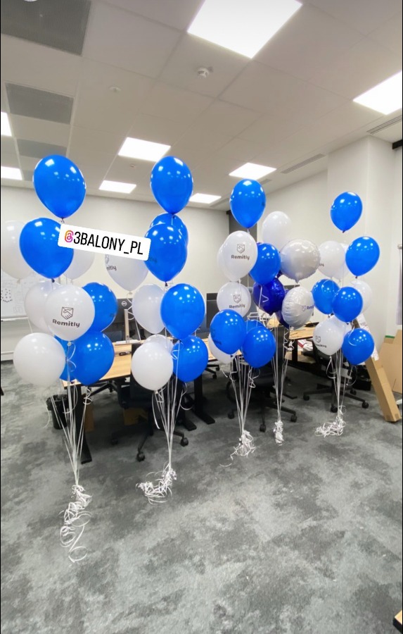 • 4 x bukiet balonowe (10 szt w bukiecie) z logo firmy w jednym kolorze z helem (logo po jednej stronie balona);