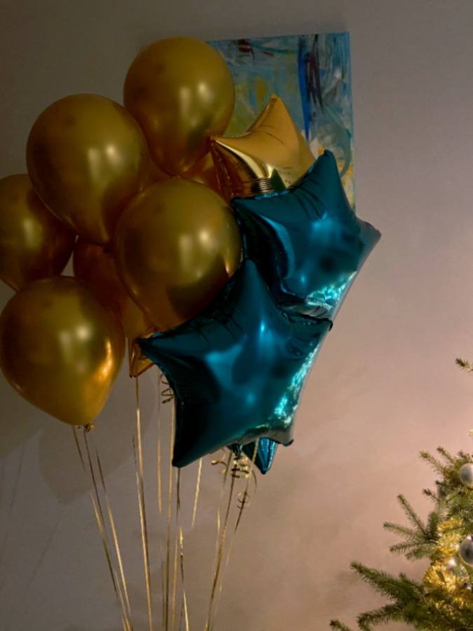 • 3 x balon foliowy gwiazda, kolor złot, rozmiar 45 cm z helem;