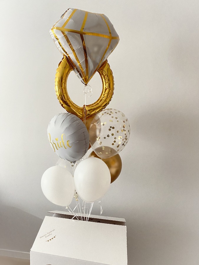 • 1 x balon foliowy pierścionek, rozmiar 90 cm z helem;