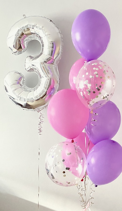• 3 x balon lateksowy, kolor fioletowy, rozmiar 30 cm z helem;