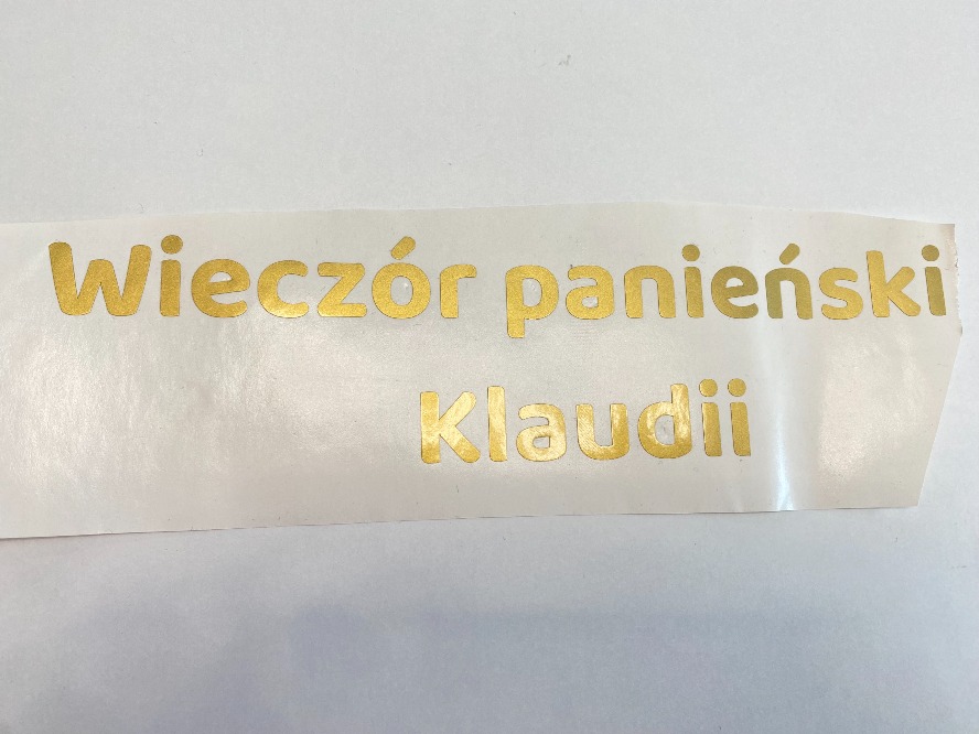 Napis z folii samoprzylepnej złoty kolor ~20 x 6 cm