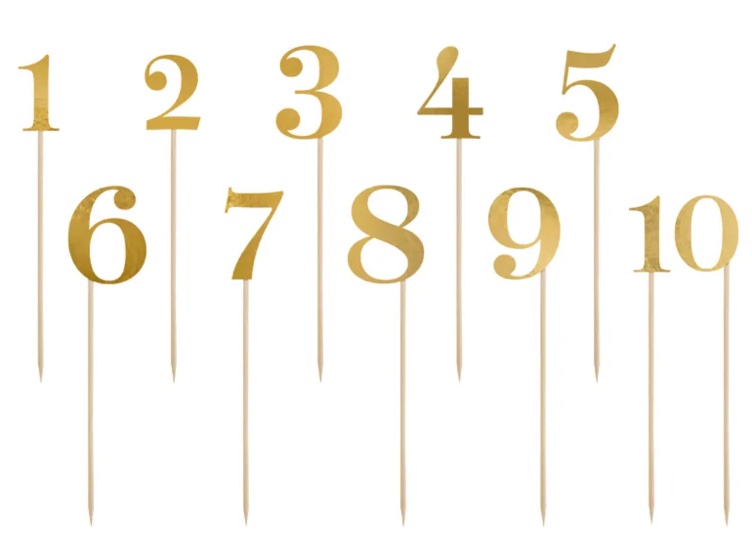 Numery na stół w kolorze złotym (1 op. / 11 szt.)