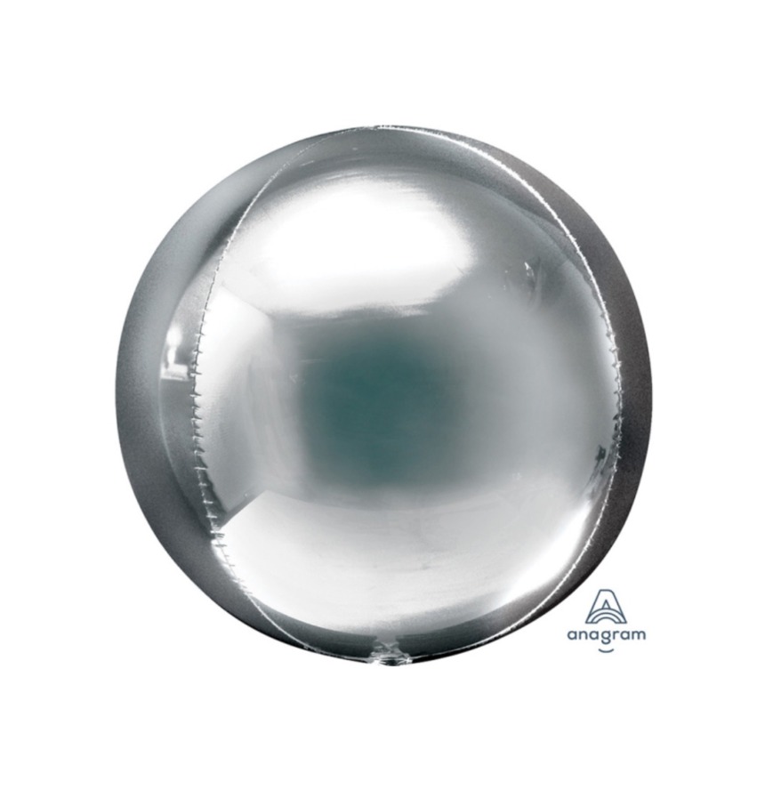 • 1 x balon orbz-kula, kolor srebro, rozmiar 38 x 40 cm z helem + wstążka ~1,5 m.