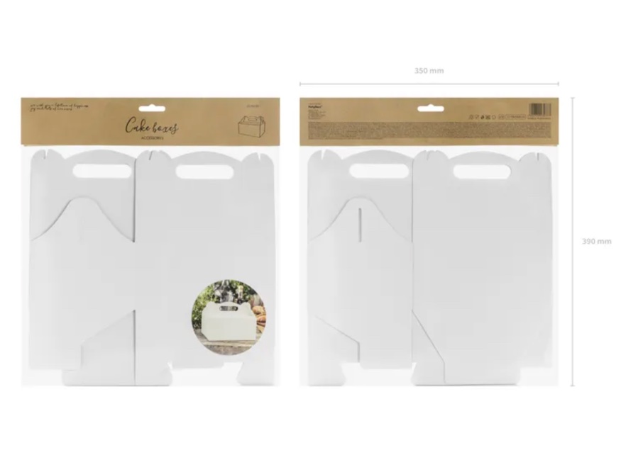 • 1 x ozdobne pudełka na ciasto z papieru w kolorze białym, set zawiera 10 sztuk, wymiary pudełka po złożeniu ok. 19 x 14 x 9 cm (1 op. / 10 szt.).