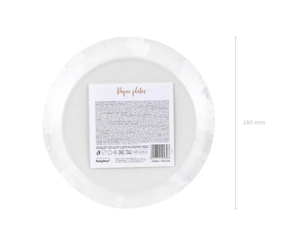 Talerzyki białe w kropki, 18 cm (6 szt.)