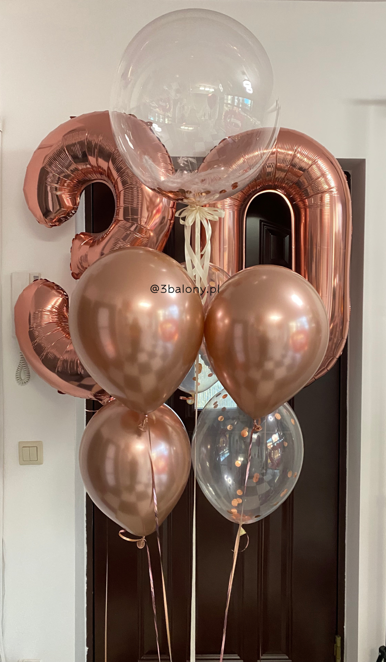 Zestaw balonów na 30 urodziny w kolorze rose gold