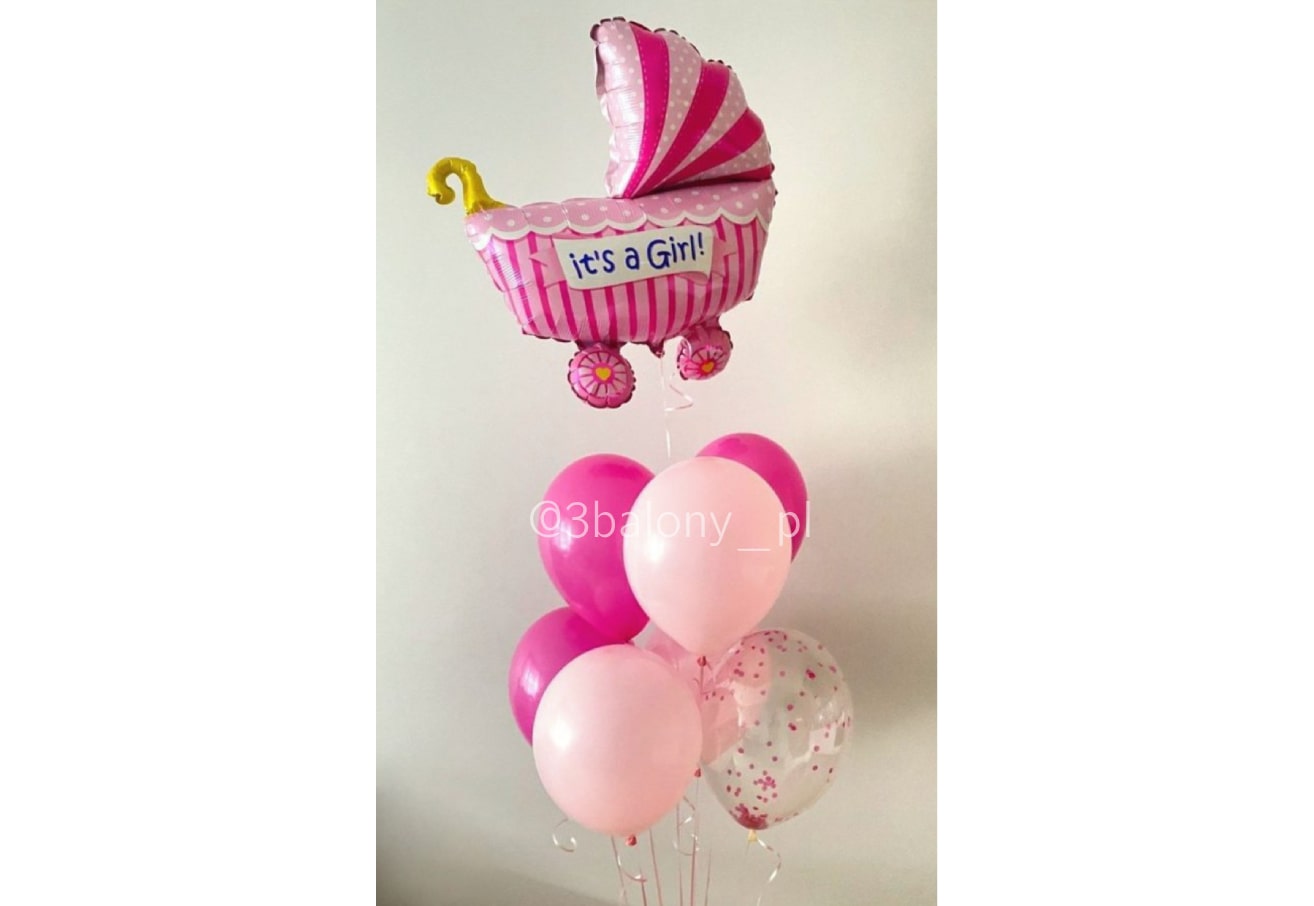• 1 x balon foliowy wózek „It’s a Girl” z helem.