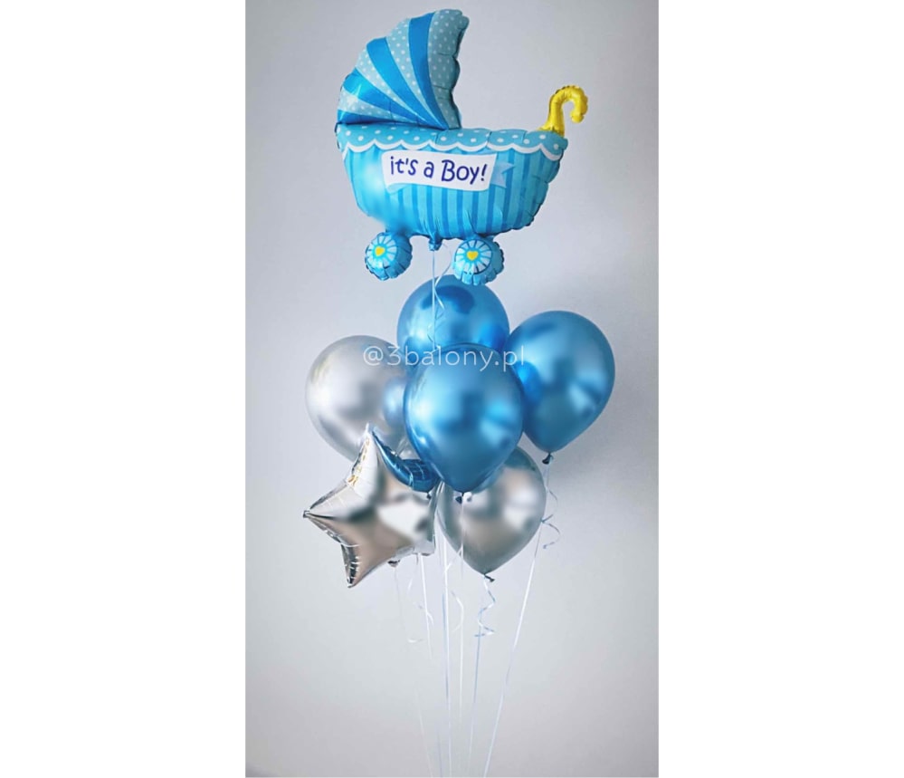 • 1 x balon foliowy z helem wózek dla chłopca;